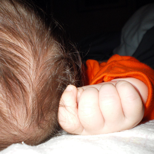 Only the baby can twist her hair, while asleep