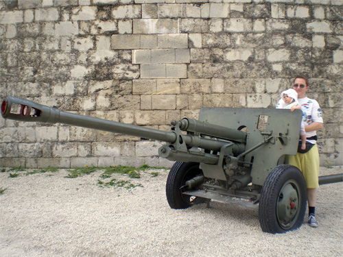 Behind an old Soviet cannon