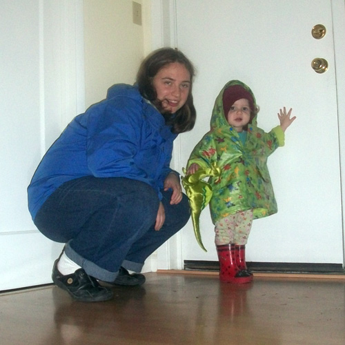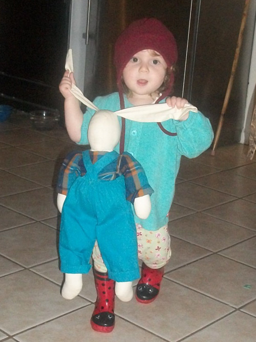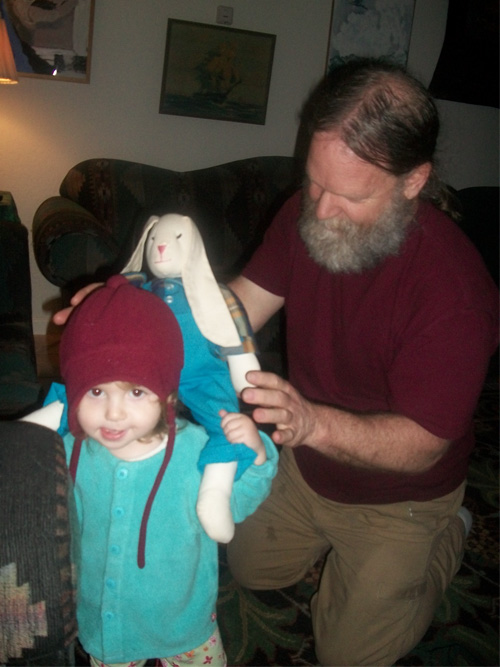 A bunnyu piggy rides with the help of Grandpa Kevin