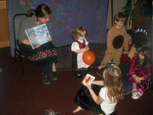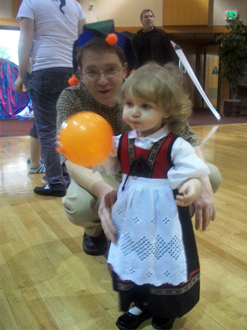 We arrive to the Purim carnival, with Gran (Mom’s Mom), Grandpa Kevin and Mom
