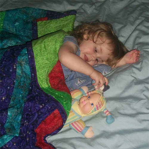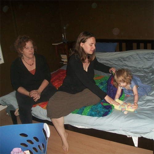 Playing in bed with Aunt Diana and Mama
