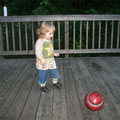Grandma Heather Kicked the bal away for me to chase