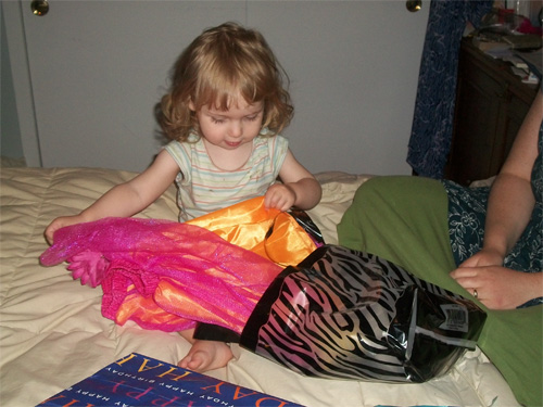 Shiny new skirt. Thank you Boppa and Granma Heather