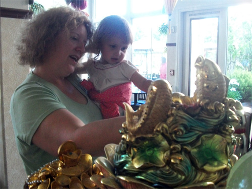 Admiring the altar in a Vietnamese restaurant