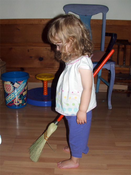 Helping sweeping up spilled lentils