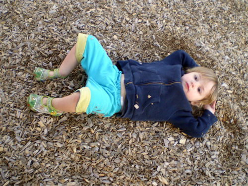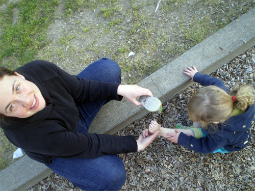 Mama is taking out wood chips from my shoes