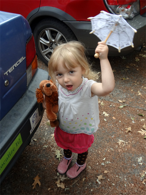 Puppy? Check. Parasol? Check. I am ready to stroll