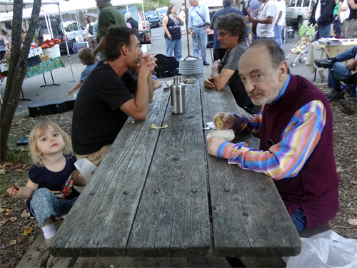 Sharing a bite at the farmer’s market
