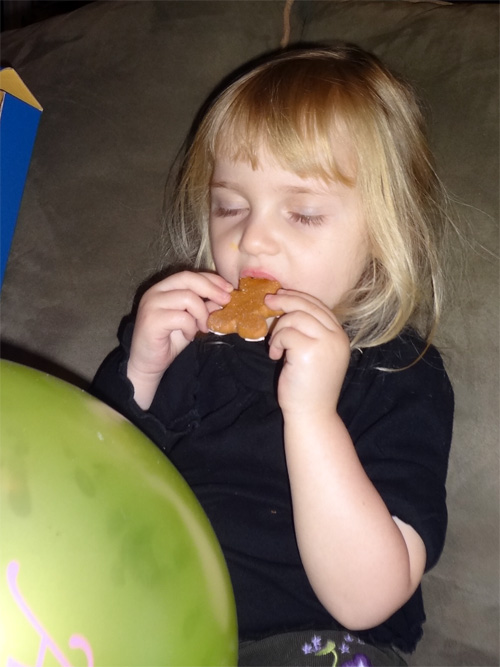 Biting off the head of the “mezeskalacs” (ginger bread) teddy bear with religious devotion