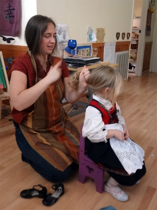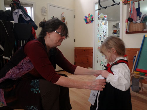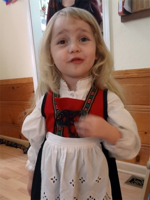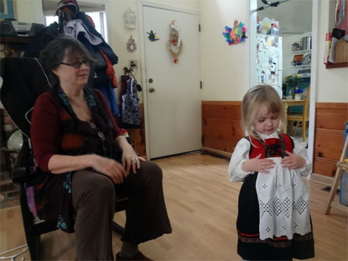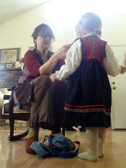 Getting my Norwegian dress on with a little help from Nini