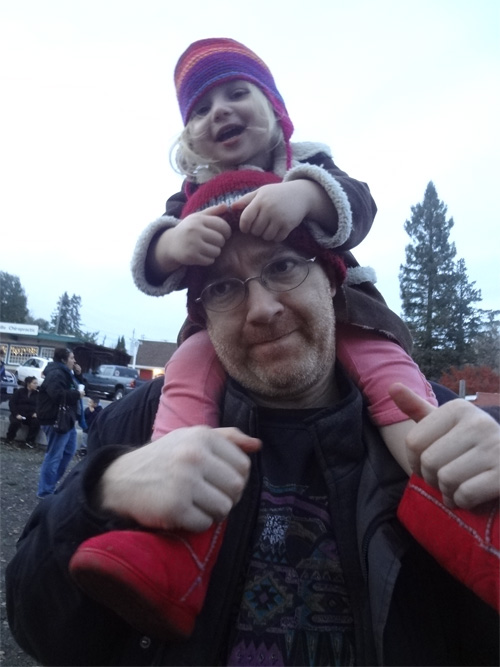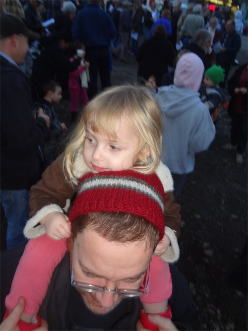 Sitting on Daddy series at the Forestville Christmas Tree lighting