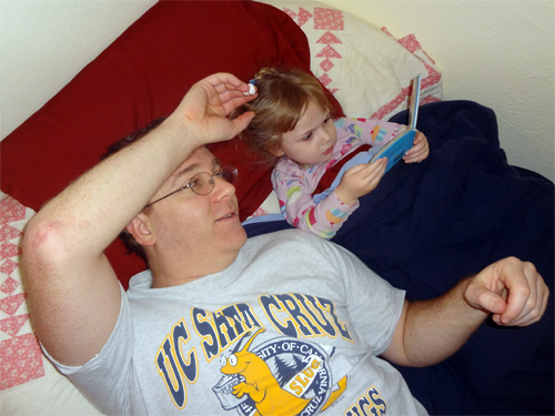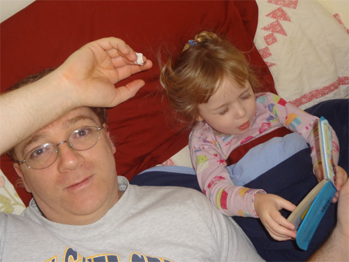 Reading a bed-time story for Daddy