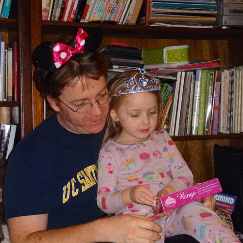 Minnie Daddy and Princess Stella getting ready for a bingo game