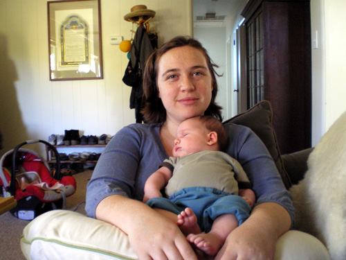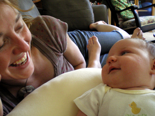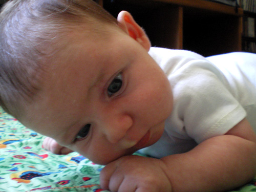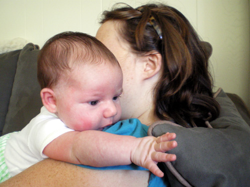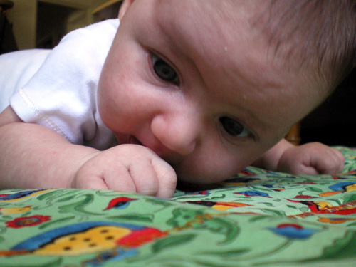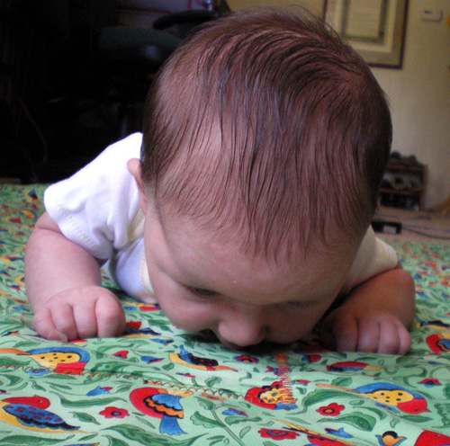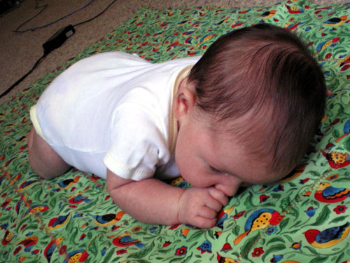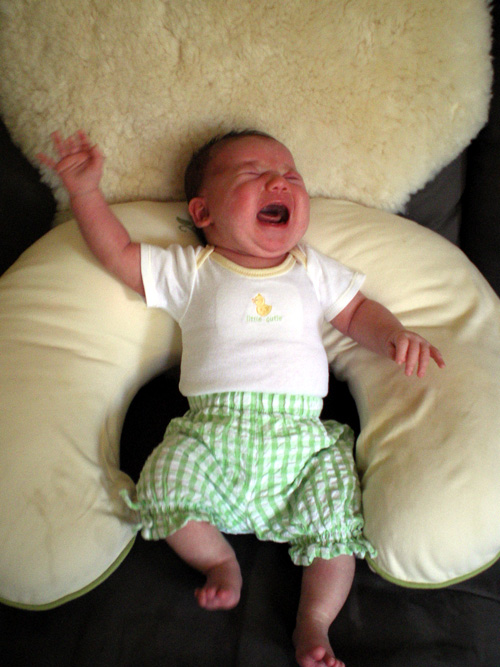 I just wanted to show her cute pants, but she was crying at the time