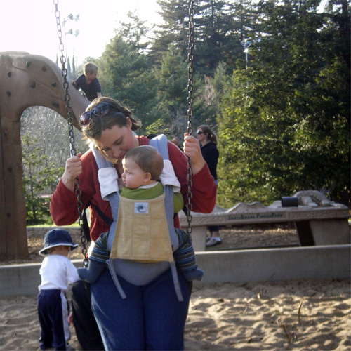 Yay! We just had our first swing on the swings this weekend! But what a great idea with the Ergo — I will have to try that.