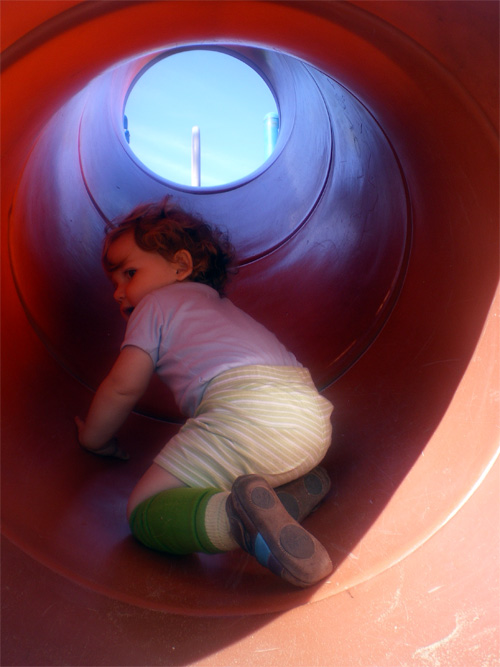 Sliding down in a tube for the first time