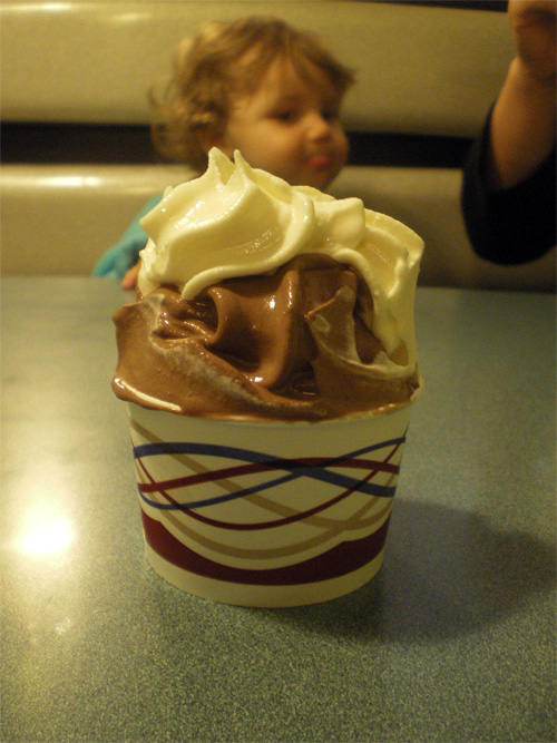 Behind a frozen yogurt