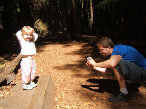 Making a picture of Nagyi in the Armstrong Woods forest