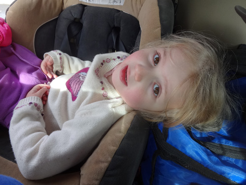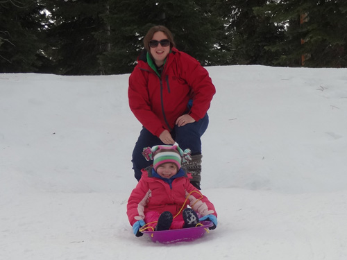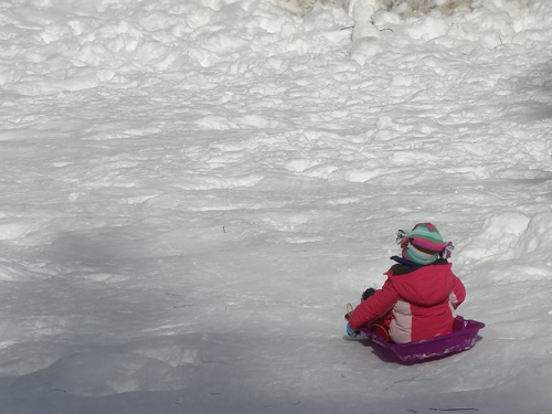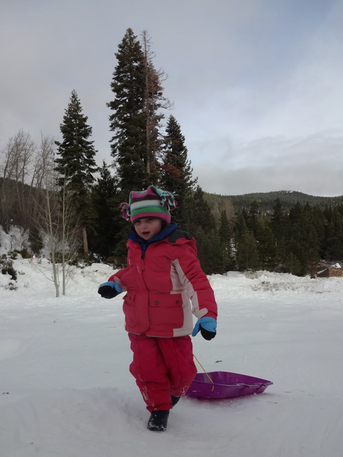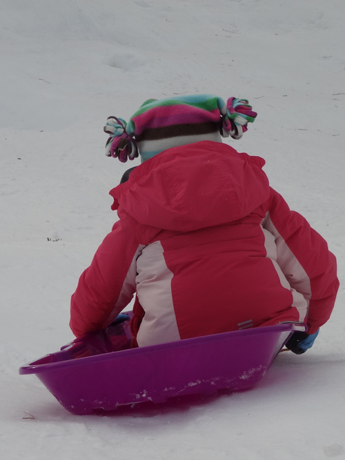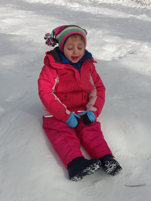 Stella sits in the snow